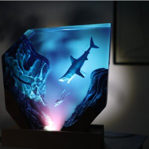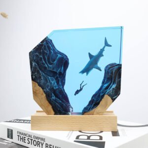 - Epoxy resin desk art ornaments: Handmade items, lamp bases may vary from batch to batch. This cool decor suitable for desks, bedside, living room. Beautiful, illuminated to showcase diver & shark scene.