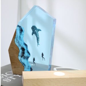 - Precision Artistry: Meticulously crafted with crystal-clear epoxy resin, this dimensional lamp creates captivating depth perception. Integrated LED illumination reveals intricate diver and marine life details, casting an ethereal glow that transforms any space after dark.